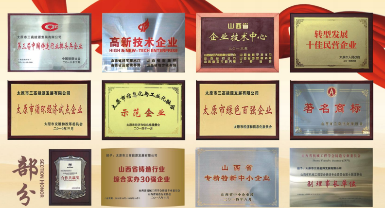 太原市三高能源发展有限公司是集研发、生产、销售汽车零部件于一体的高新技术企业,公司位于太原市清徐县东于镇太汾路1号。公司专业从事汽车零部件18年,产品服务于国内商用车各大主机厂。主要顾客有北汽福田戴姆勒、三一重工、大运汽车、北汽重卡等,连续18年被评为北汽福田戴姆勒汽车“优秀供应商”,同时被评为“A级供应商”。2016年公司认定为“高新技术企业”,2021年被工信部评为专精特新“小巨人”、“绿色工厂”企业,2022年主要产品载重汽车整体式前接梁”被工信部评为国家级制造业单项冠军产品,该产品2020年入围中国工业优秀设计奖,“第四届中国铸造行业排头兵企业”。公司技术中心协同各大主机厂同步进行新车型零部件的优化设计,配备3台3D打印机完成新产品的试制工作。拥有多条生产线、加工中心、电泳生产线等生产设施将研发零部件转化生产,给主机厂提供设计、生产、服务于一体的定制式服务。
