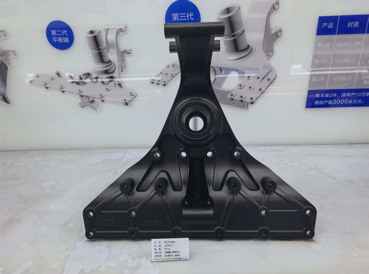 名称:第二代平衡轴 材质:QT800-5 重量:80 kg 生产工:铁模覆砂&精密加工 适用车型:国V牵引车、自卸车